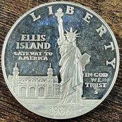 3/4oz SILVER Commemorative U.S. $1 Dollar Coin “1986~Ellis Island”$65Las Vegas, NV