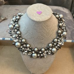 Necklace With White Large Beads, Clear Small Rhinestones And Silver Chain $8Ontario, CA