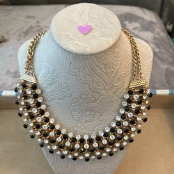 Necklace With Black And Clear Rhinestones With Pleated Gold Chain And Adjustable Length $8Ontario, CA