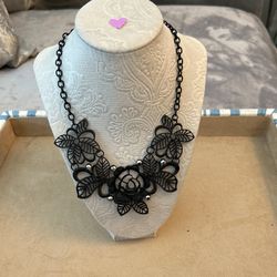 Necklace Outline Black Fliers With Small Silver Rhinestones And Adjustable Length $8Ontario, CA