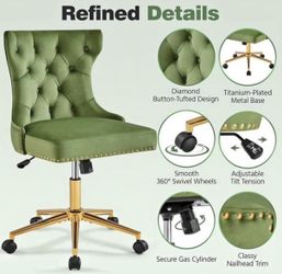 Green velvet office chair with wheels$70Oakbrook Terrace, IL