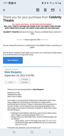 Nate Bargatze Comedy Show @ Celebrity Theatre $170 For Both *SOLD OUT*$170Phoenix, AZ