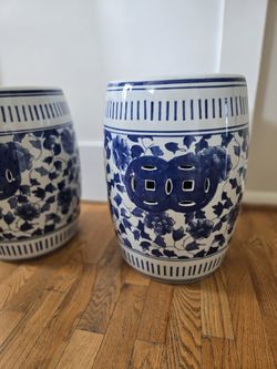 18" Blue And White Porcelain Drum Table Planter From Williams Sonoma $250$250Houston, TX