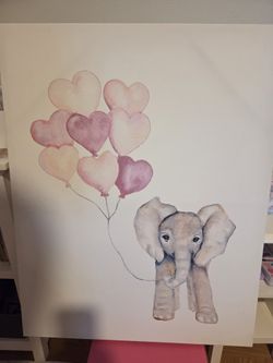The Kids Room by Stupell Baby Elephant with Pink Heart Balloons Stretched Canvas Wall Art 24x30$40Houston, TX