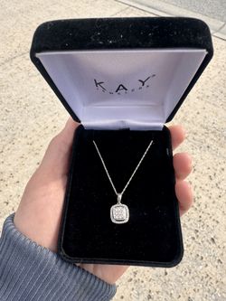 ✨ 10K White Gold Diamond Halo Necklace – Square Cluster Pendant ✨ (Kay Jewelers)$500Merritt Island, FL