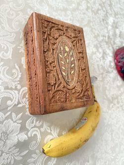 Vintage sandalwood hand-carved jewelry box with mother-of-pearl inlay.$20Claremont, CA