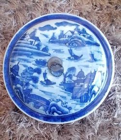 Antique Blue &white Porcelain Covered Bowl With Lotus Flower On Top$40Claremont, CA