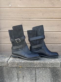 Emu Ainslie black leather buckle strap moto combat boots women's 6$80Fallbrook, CA
