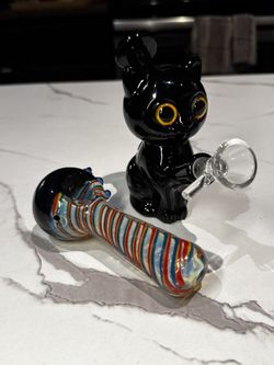 Super Cool Black Cat Glass Art And Matching Glass Set - Brand New $55Seattle, WA