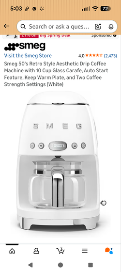 SMEG RETRO COFFEE MAKER NEW IN BOX. COLOR WHITE. CITY OF 🍊. $150$150Anaheim, CA