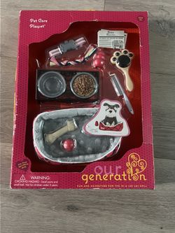 Our Generation Pet Care Playset Dog Bed Bone Ball Food Bowl Comb for 18 in Dolls$15Huntington Park, CA