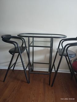 Bristol Table Black With A Glass Top One Of The Chairs Has A Little Rip However You Can Easily Put A Chair Cover On Top Of It$40Southfield, MI