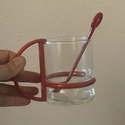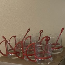 VTG 6 pcs coffee or tea glass cups with red holders & spoons- set$50Los Angeles, CA