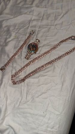 Bustdown rose Gold Watch, Bracelet And Cuban Chain$300Fort Lauderdale, FL