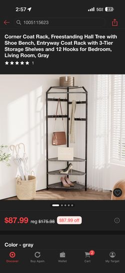 Corner Coat Rack, Freestanding Hall Tree with Shoe Bench, Entryway Coat Rack with 3-Tier Storage She$50Los Angeles, CA