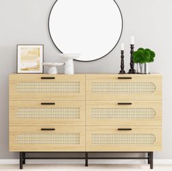 6 Drawer Double Dresser for Bedroom, Natural Rattan Chest with Drawers, Modern Wood Boho Dresser with Handles, Storage Closet for Closet, Living Room $109Moreno Valley, CA