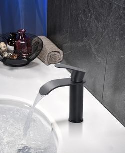Waterfall Bathroom Faucet Matte Black: Bathroom Sink Faucet for 1 Hole or 3 Holes, Single Handle Vanity Faucet with Metal Pop up Drain, Stainles$40Moreno Valley, CA