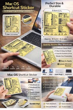 🍏 2 Pack Mac OS Keyboard Shortcut Sticker – MacBook & Apple Keyboard Cheat Sheet$5Levittown, NY
