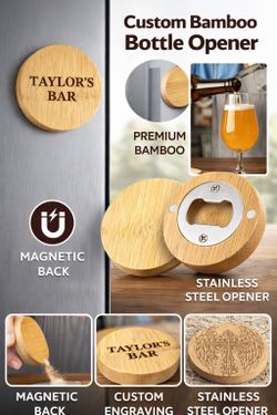 Bamboo Magnetic Bottle Opener – Personalized Engraved Name or Logo – Fridge Mount – Custom Gift$7Levittown, NY