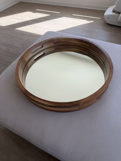 Round Wooden Mirrored Serving Tray with Handles, Decorative Bar or Coffee Table Tray$80Irvine, CA