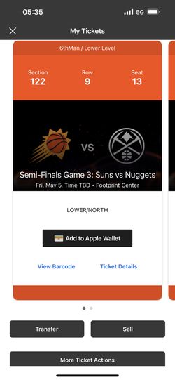 Suns Vs Nuggets $850Litchfield Park, AZ