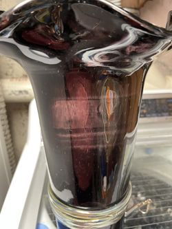 Amethyst Color Glass Vase Tall Vintage With Tri Color Band Around It 14 1/2 X 9 1/2 Tall$60Huntingtn Sta, NY