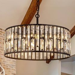 Black Crystal Chandeliers, 5 Lights Modern Round Dining Room Ceiling Light Fixture, Farmhouse Drum Chandelier for Living Room, Bedroom, Bathroom, Kitc$195Katy, TX