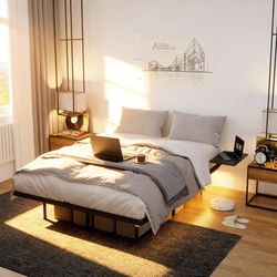 Full Size Floating Bed Frame with Adjustable Bedside Trays, RGB Smart LED Lights & USB Charging Station - Modern Metal Platform Bed, No Box Spring Nee$95Katy, TX