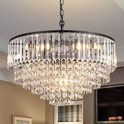 Black Modern Crystal Chandeliers, 5 Lights Round Farmhouse Chandelier for Dining Room, Hanging Pendant Light Fixture for Living Room, Entryway, Foyer,$215Katy, TX