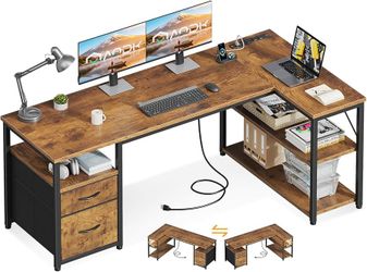 55 inch L Shaped Computer Desk with Drawers, Reversible Computer Desk with Storage Shelves, Home Office Desk with Built-in Power Outlet, Rustic Brown$110Katy, TX