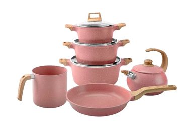 10 Pcs Ceramic Marble Cookware Set with Wooden Handles with Tea Kettle $249Riverside, CA