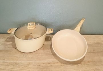 3 Pieces 11” Ceramic Marble Cookware Set Beige Set with Glass Lid$79Riverside, CA