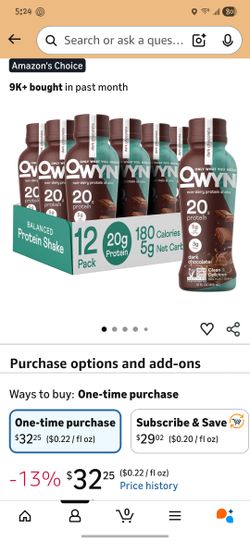 OWYN Plant-Based Protein Shakes – Dark Chocolate (10 Bottles)$20Gig Harbor, WA