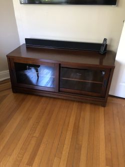Dark Brown Mahogany Wood TV Stand Storage With Sliding Glass Doors Already Assembled $200West Hollywood, CA