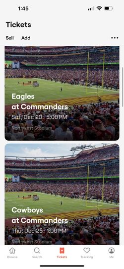 2 Commanders Eagles NFL Football Tickets $300Silver Spring, MD