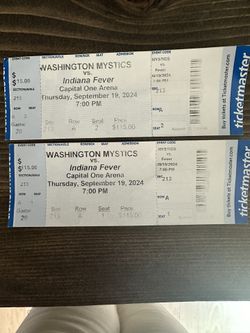 WNBA MYSTICS VS. INDIANA FEVER- THURSDAY, SEPTEMBER 19th$200White Oak, MD