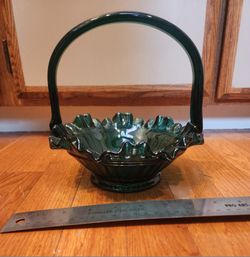 Vintage Fenton Spruce Green ruffled art glass basket$40Puyallup, WA