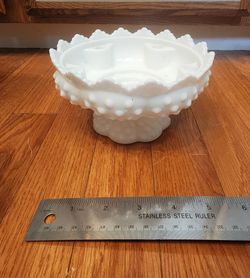 Vintage Fenton White Milk Glass Hobnail 6 Flower And Candle Holder Ruffled Centerpiece Bowl$40Puyallup, WA