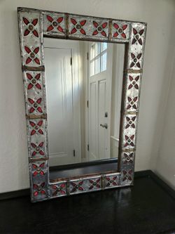Syrian Pewter Brass With Enamel Red Flowers Over A Solid Wood Frame Mirror$200New Haven, CT