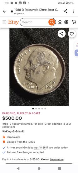 1988 Roosevelt Denver Mark Dime With Raised Edges$500Tacoma, WA