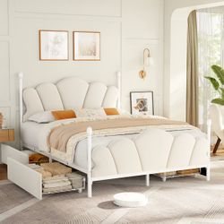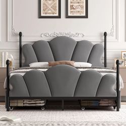 QUEEN SIZE 4 DRAWER BED FRAME, HEAVY DUTY METAL PLATFORM BED WITH ADJUSTABLE VELVET UPHOLSTERED HEAD$100South Plainfield, NJ
