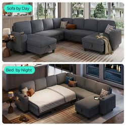 Storage Sectional Sleeper Sofa with Pull Out Bed, 9 Seat Modular Sectional Sofa with with USB & Cup Holder, Plush Corduroy Sectional Couches for Livin$550Edison, NJ