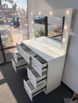 47 inch Vanity Table With mirror Hollywood light 7 drawers$150South Plainfield, NJ