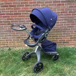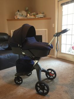 Stokke Xplory Navy Blue Stroller with Carry Cot$550Biltmore Lake, NC