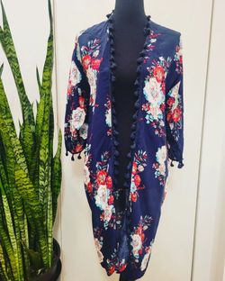 Charlotte m/l navy floral cover up with pom poms $13New York, NY