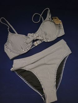 NEW ASBAYSON Large white and navy stripe bikini$30New York, NY