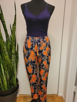 Navy and orange sleeveless romper with pockets sz M$17New York, NY