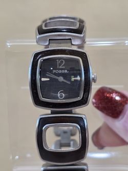 Fossil WOODGIRL ES2107 Square Face Brushed Stainless Steel Wood Detail Watch Running*Please Read Description*$40Goodyear, AZ