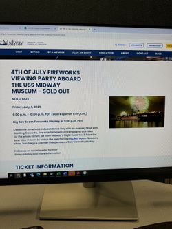 2 Tickets To Midway Fourth of July firework party$80Oceanside, CA