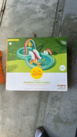 Inflatable rainbow pool with slide and sprayer$40Houston, TX